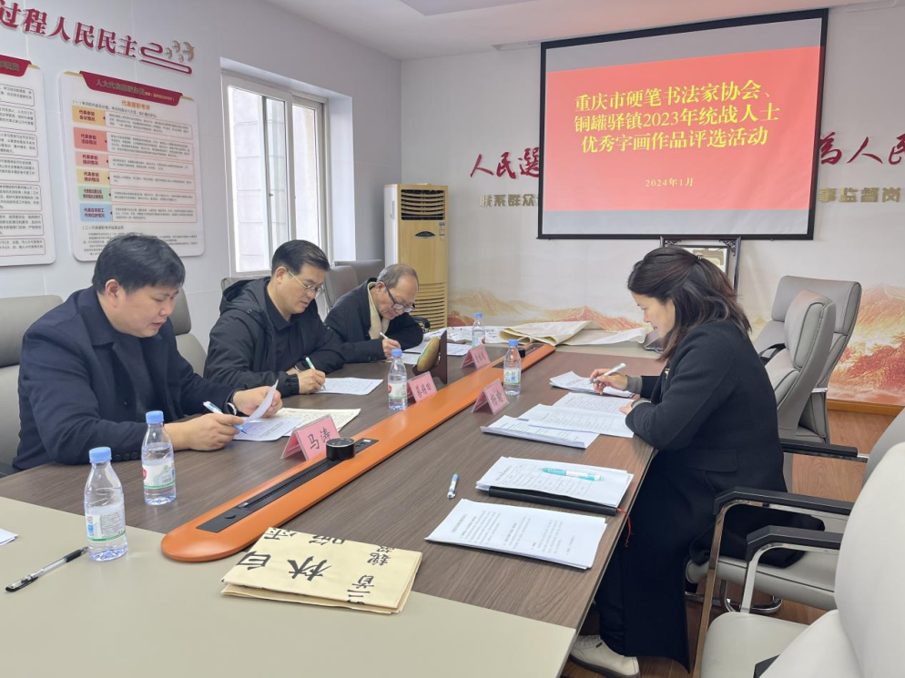 此次参选作品积极向上、格调高雅,体现了统战人士爱党爱国、团结奋进的良好精神风貌。为确保本次书画作品评选的公平公正,铜罐驿镇特别邀请了重庆市政协委员、中国硬笔书法协会主席团常委、重庆市硬笔书法家协会主席蔡锡田,重庆市硬笔书法家协会书记、副主席曾继明,重庆市硬笔书法家协会监事长马涛参加。